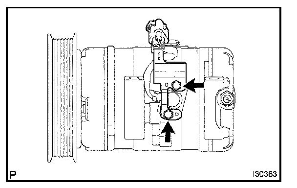 b. Sufficiently apply compressor oil to a new O-ring and fitting surface of the compressor and magnetic clutch.
