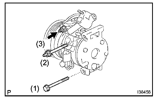 a. Tighten the compressor and magnetic clutch with the 3 bolts.
