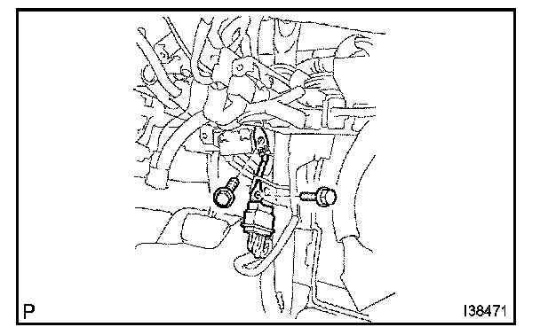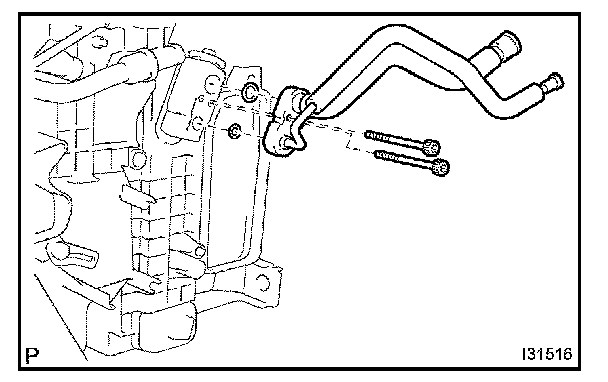 b. Using a hexagon wrench 4 mm (0.16 in.), remove the 2 hexagon bolts and air conditioning tube assy.