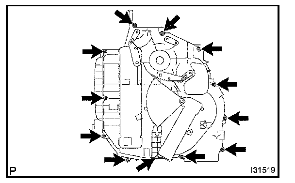 a. Remove the 12 screws and heater case LH.