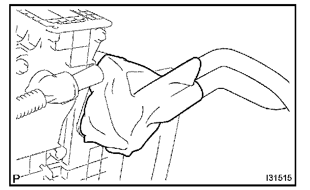 NOTE: Prepare a drain pan or cloth for when the cooling water leaks.