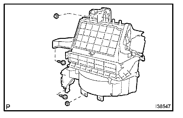b. Remove the cooler evaporator sub-assy No.1 from the heater case RH.