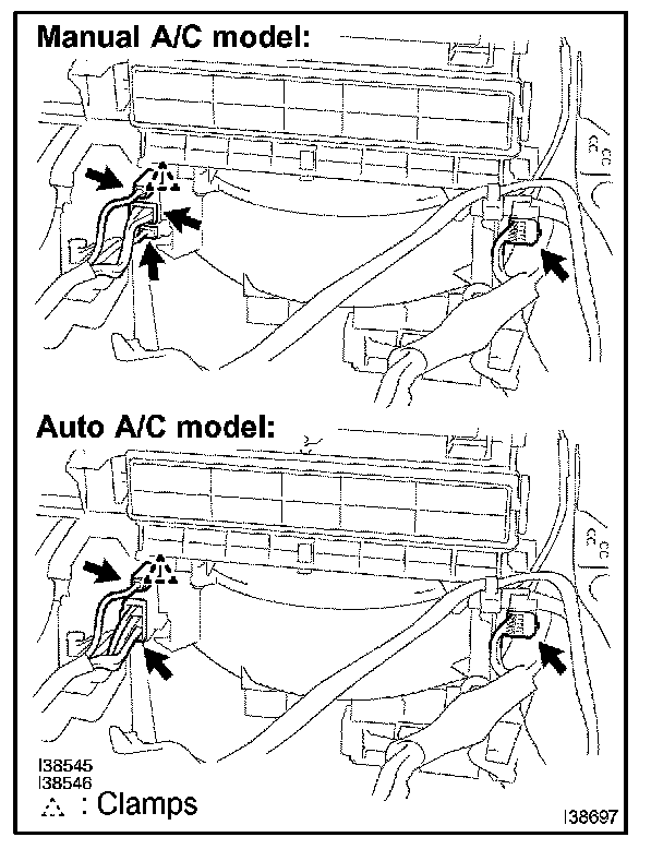 Install the 2 wire harness clamps.