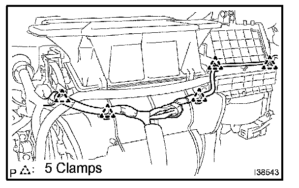e. Install the 5 wire harness clamps.
