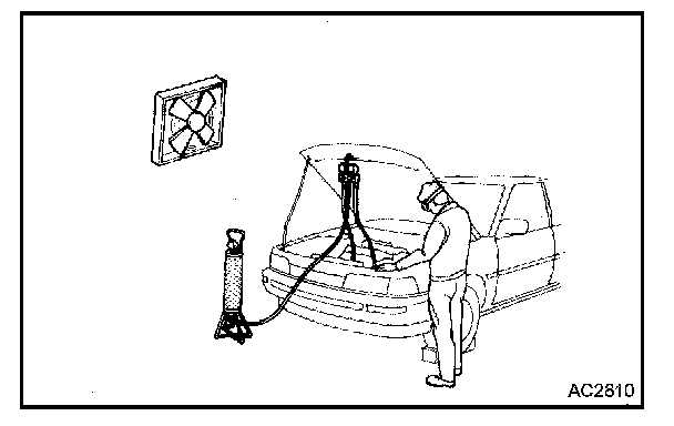 CAUTION: This may damage the inside of the compressor because the compressor parts always move regardless of whether the A/C system is turned on or off.