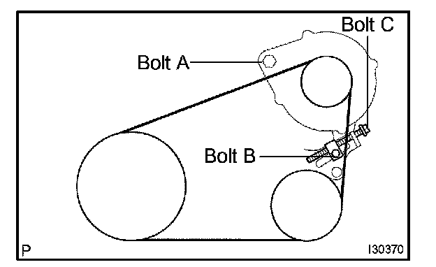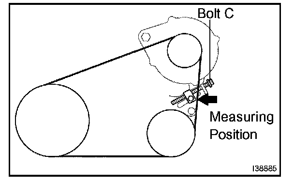 a. Apply drive belt tension by turning bolt C.