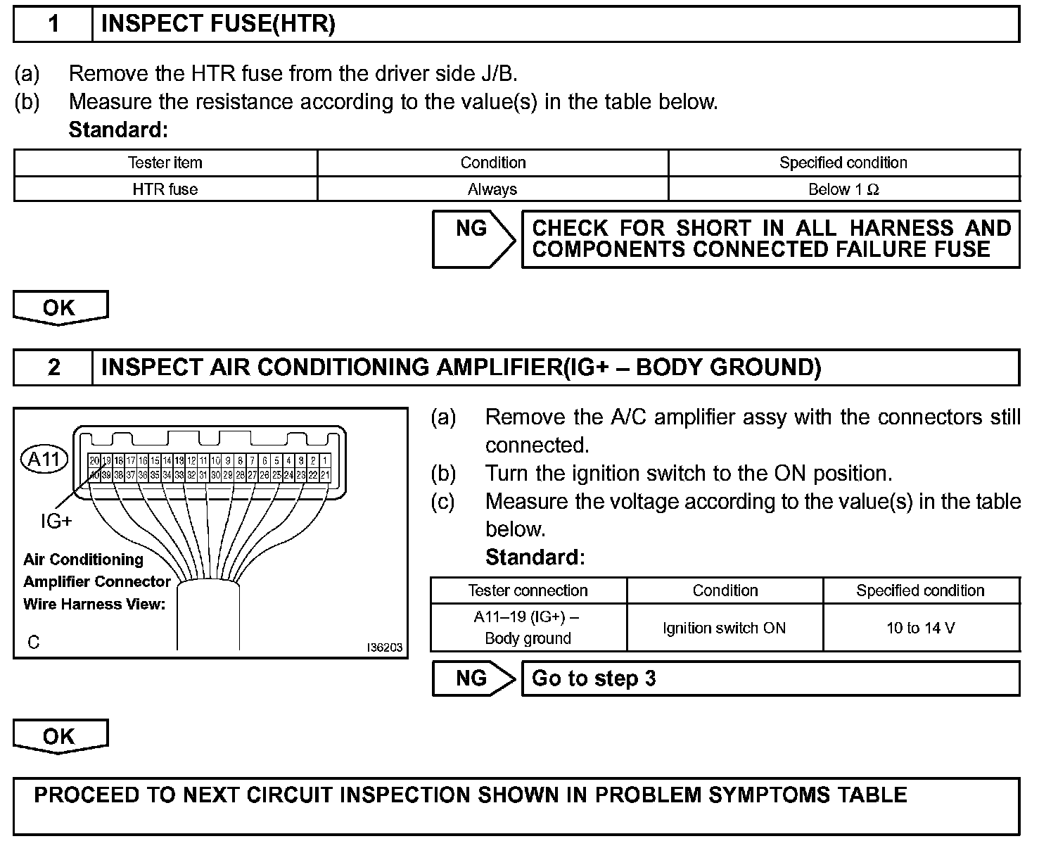 HINT: Start the engine before inspection. Check the IG1 relay or battery if the engine does not start.