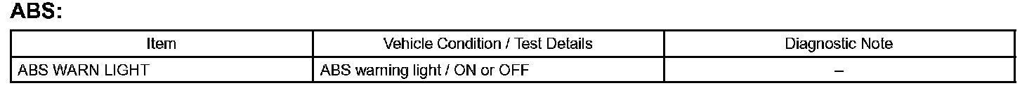ACTIVE TEST LISTHINT: Perform the ACTIVE TEST using the hand-held tester to operate the ABS warning lights. Performing the ACTIVE TEST is one of the methods to shorten labor time. It is possible to display the DATA LIST during the ACTIVE TEST.