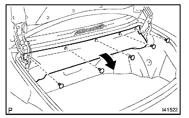 a. Remove the 5 clips and turn up the luggage compartment trim cover front.