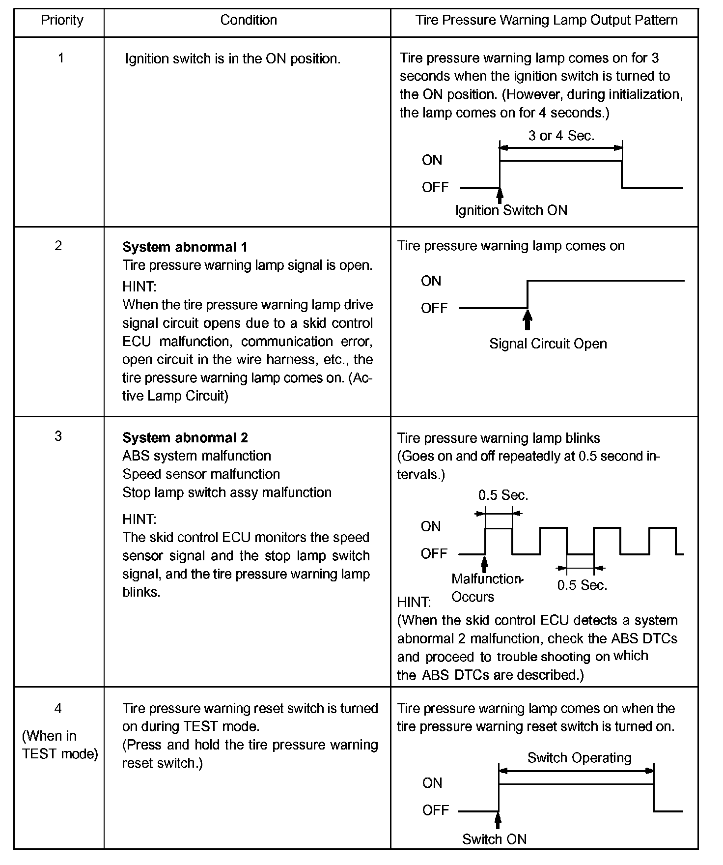Tire Pressure Warning Lamp Circuit