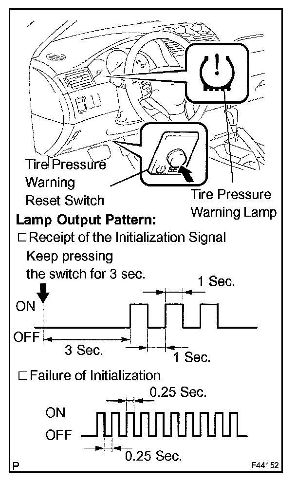 HINT: If the tire pressure warning lamp blinks at 0.25 second intervals while the vehicle is being driven, the initialization may have failed. If so, perform the initialization again. (Turn the ignition switch OFF and retry from step 1-(a).)