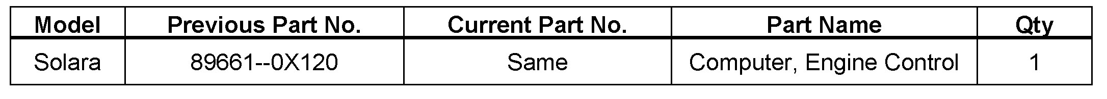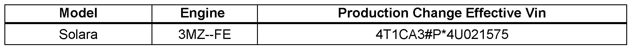 2004 model year Solara vehicles equipped with 3MZ--FE engine produced BEFORE the Production Change Effective VINs shown below.