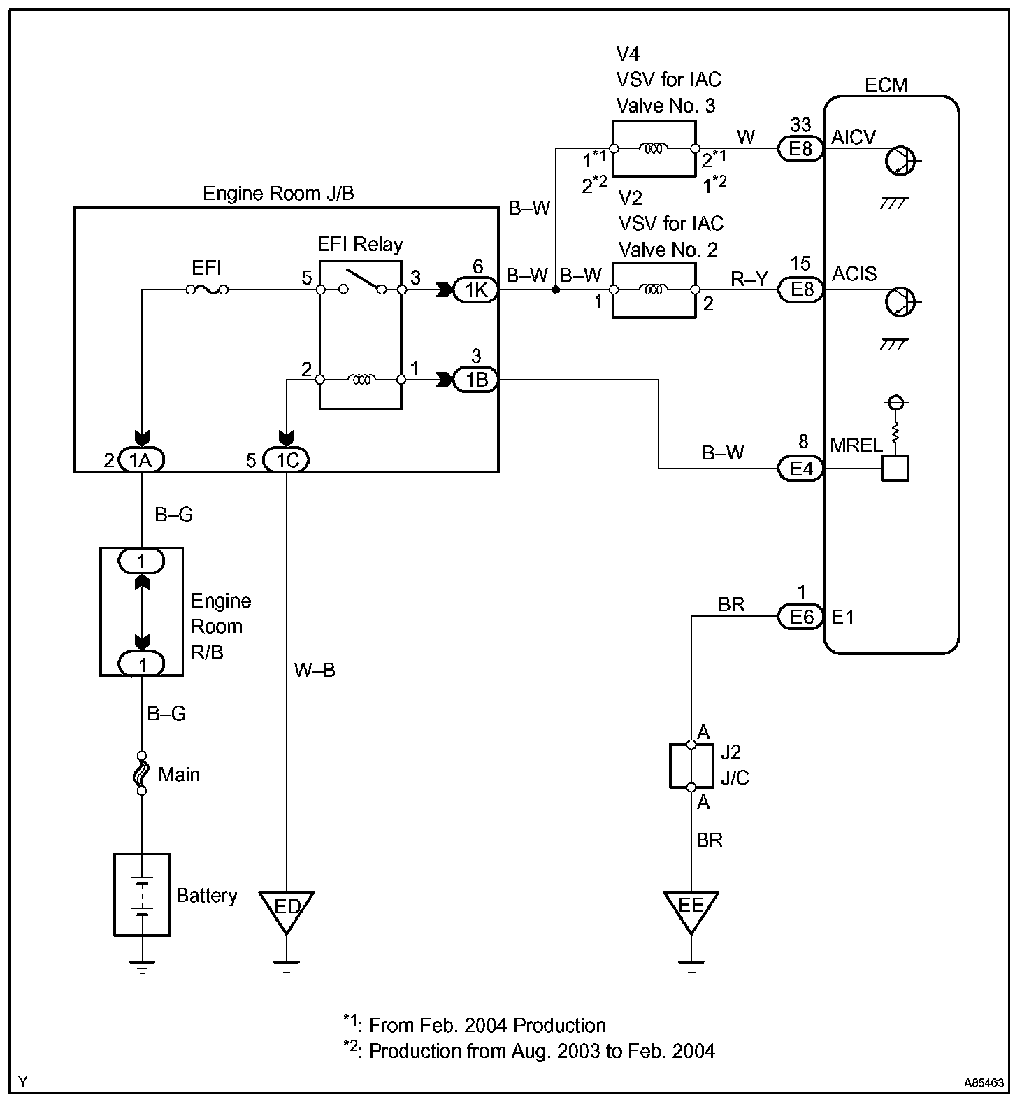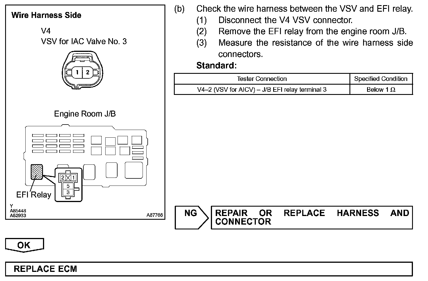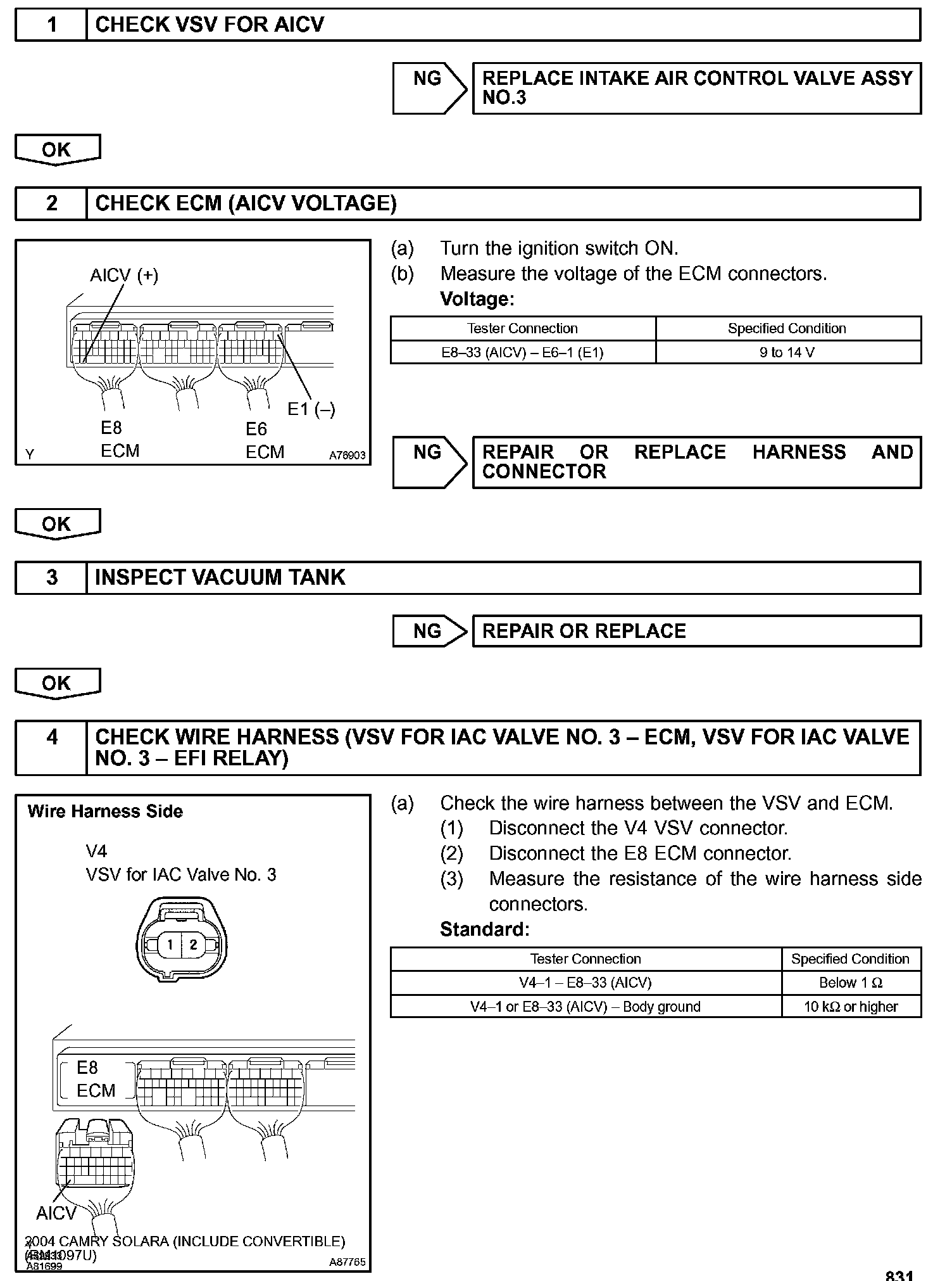 When the engine is operating at low to mid speeds, this system operates the IAC valve to close one of the air cleaner inlets. When the engine speed is more than 3,200 rpm and the opening angle of the throttle valve is more than 30°, the ECM activates the VSV and opens the IAC valve No. 3.