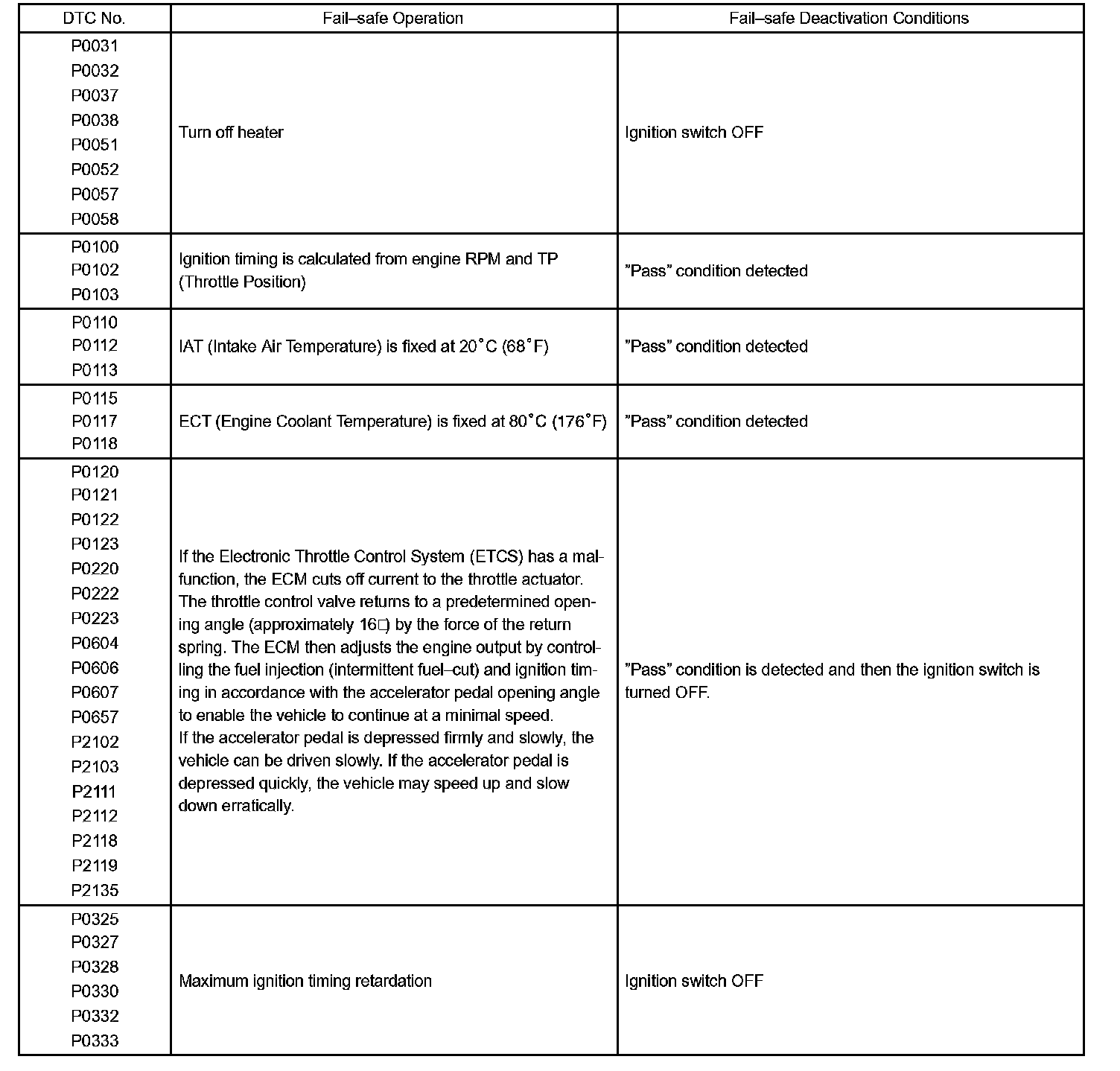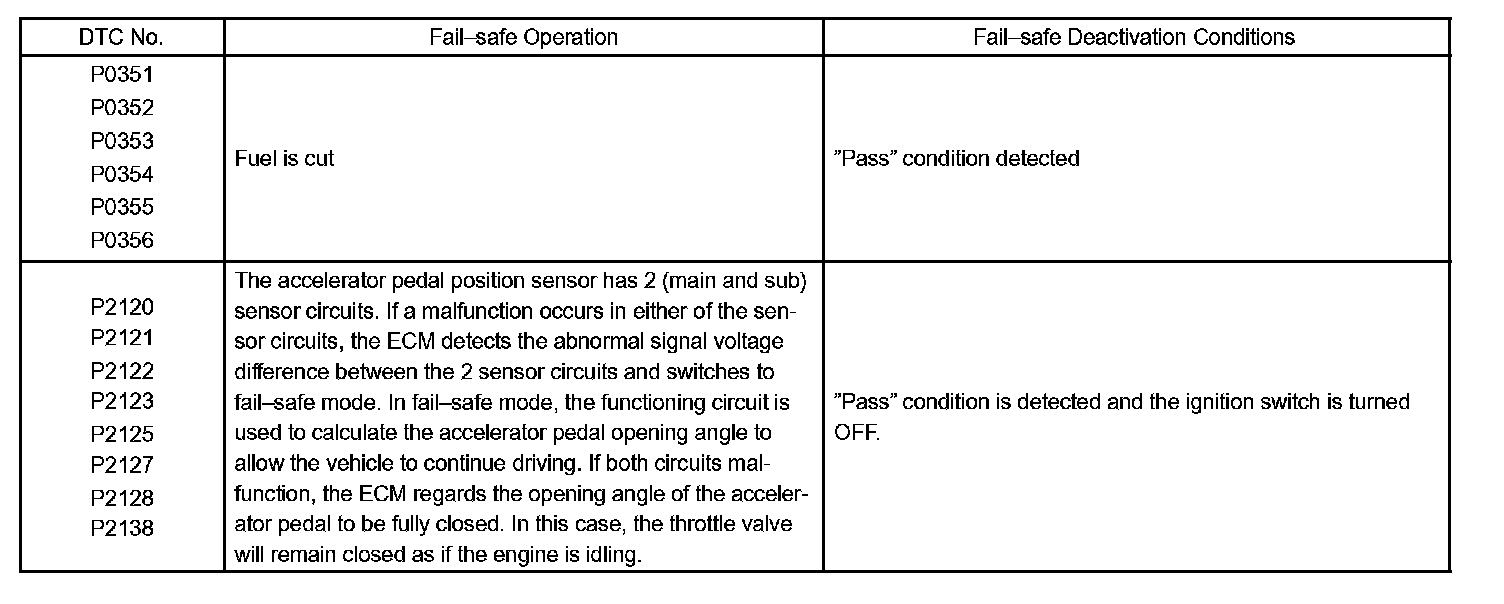 If any of the codes are recorded, the ECM enters fail-safe mode.
