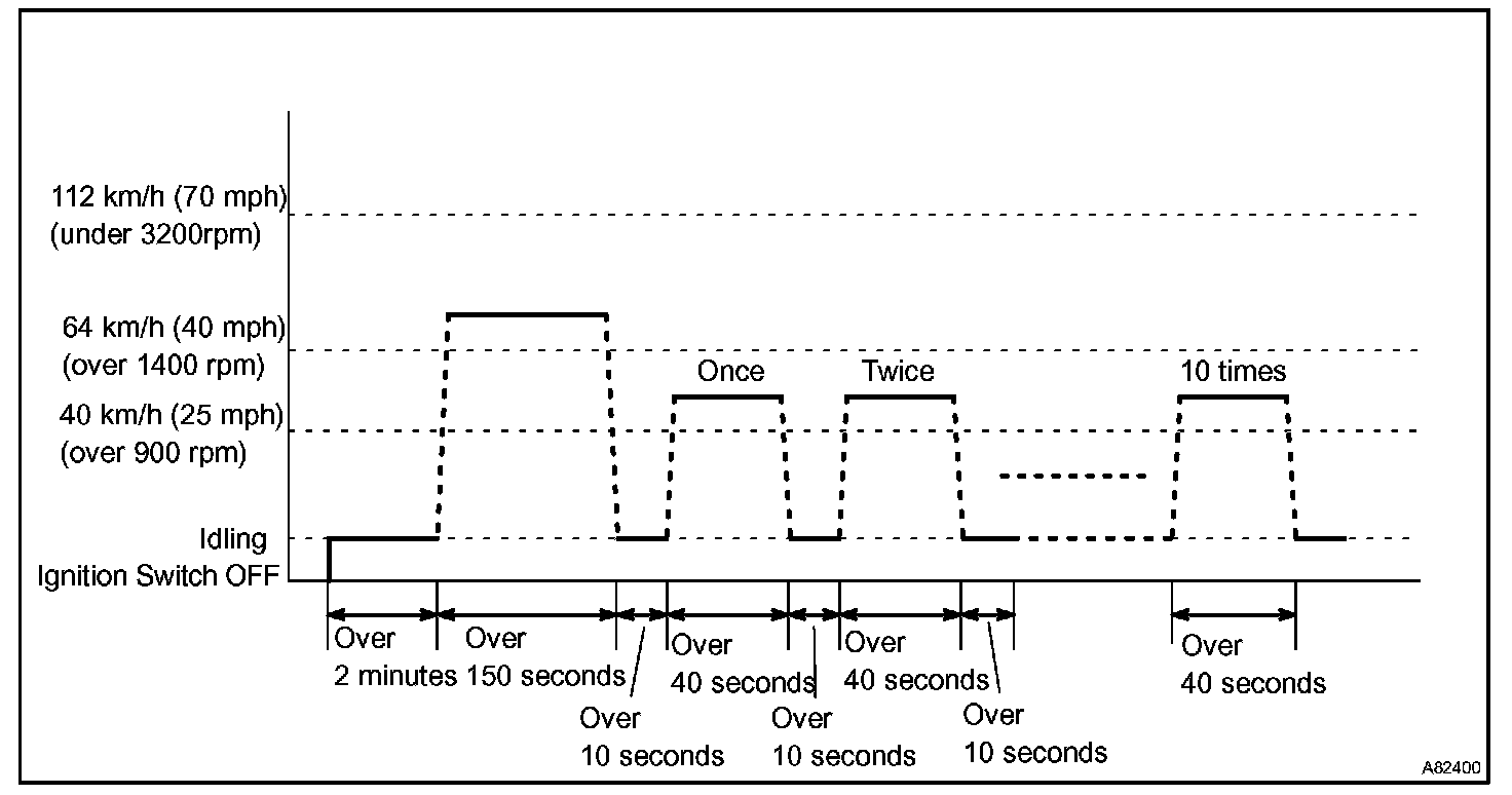 If IAT was less than 10°C (50°F) when the engine was started, drive the vehicle at 64 to 88 km/h (40 to 55 mph) for an additional 4 minutes.