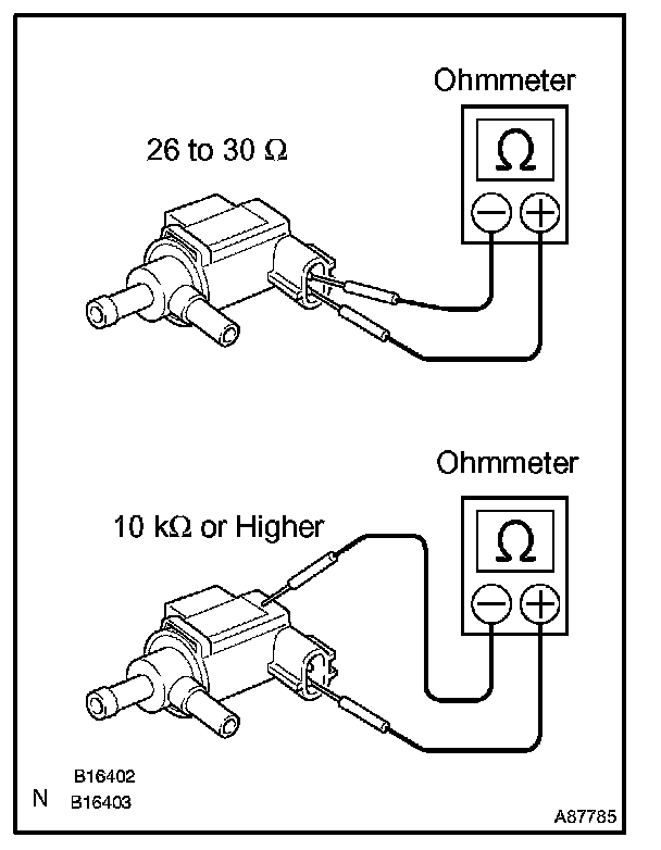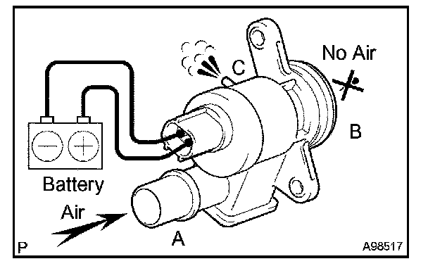 HINT: In order to maintain air tightness, the check should be performed while holding the VSV terminal port closed.
