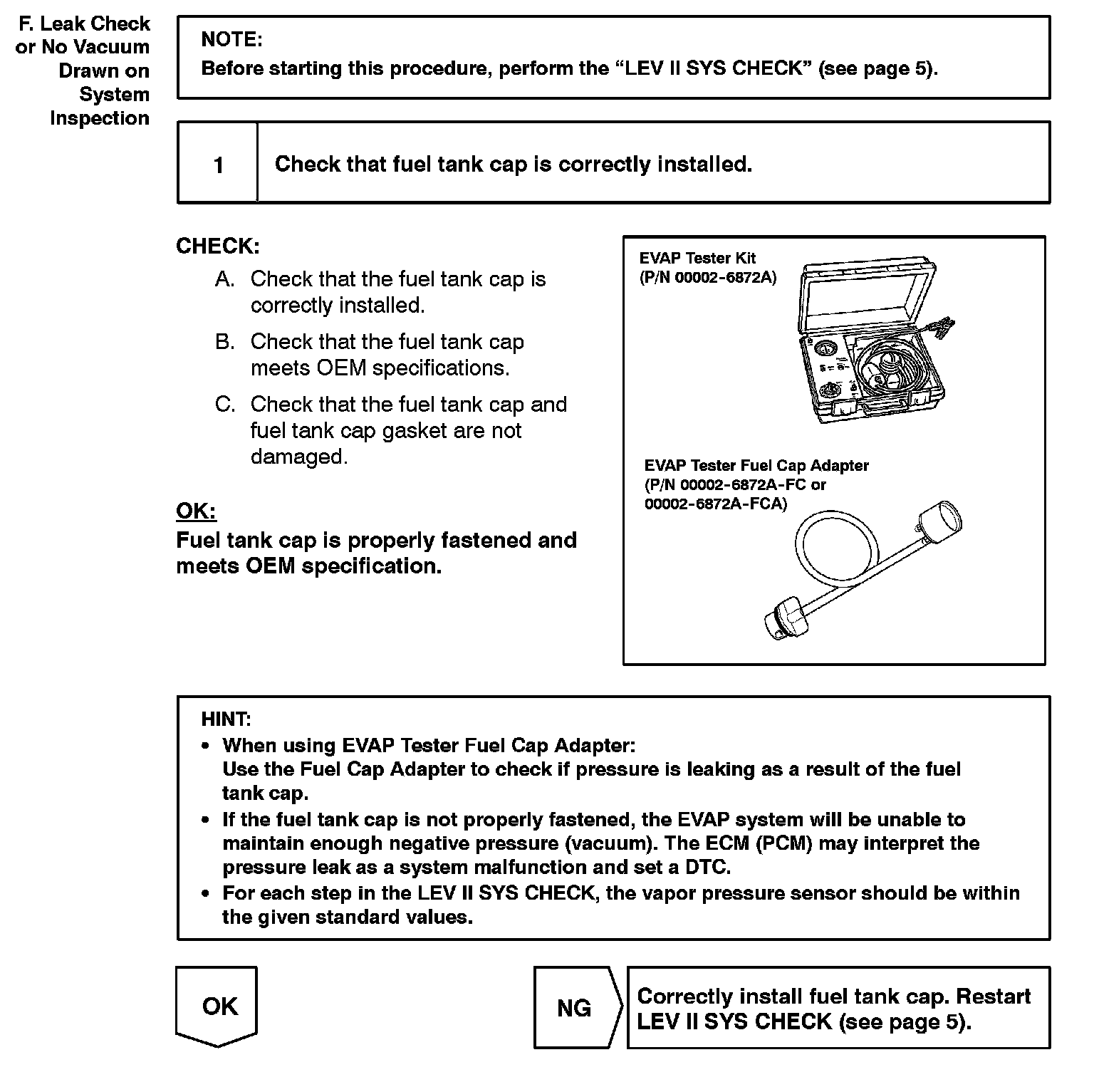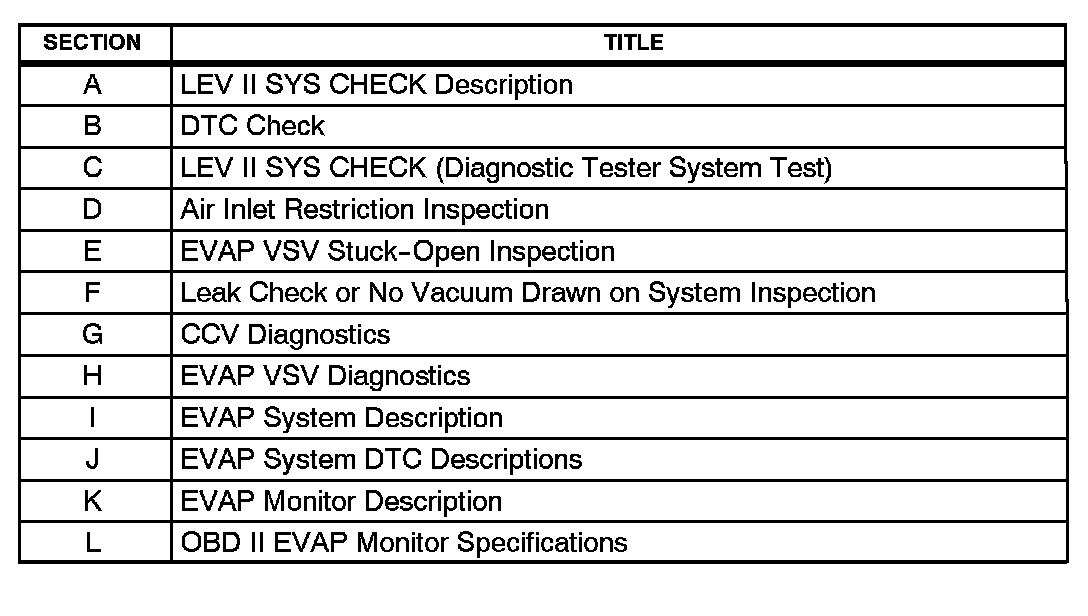 The inspection procedure using the LEV II System Check (LEV II SYS CHECK) is described in this bulletin. This function is available using a Diagnostic Tester with version 11.0a software (or newer).