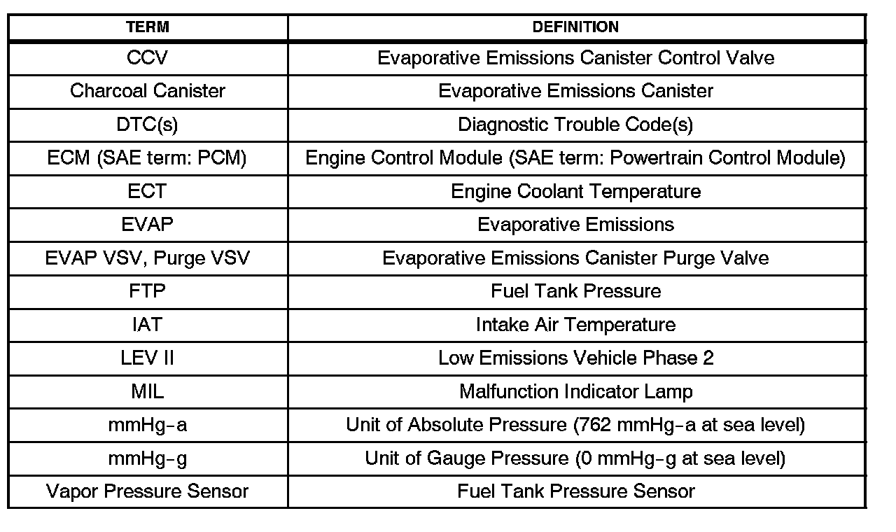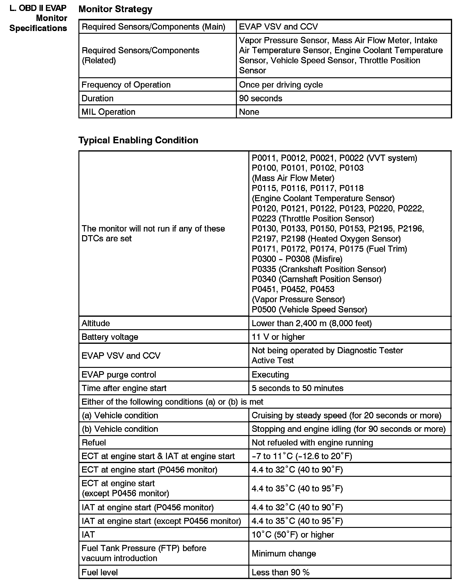 L. OBD II EVAP MONITOR SPECIFICATIONS