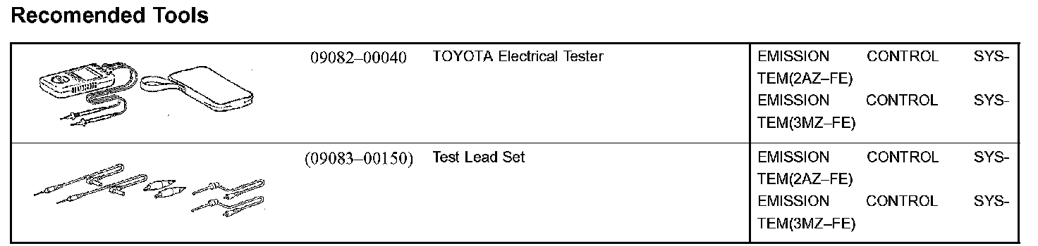 Emission Control - Recommended Tools: