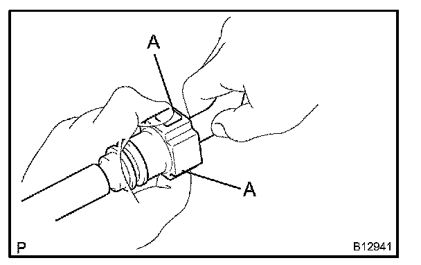 3. Disconnect the connector from the hose while pinching part A with your fingers, as shown in the illustration.