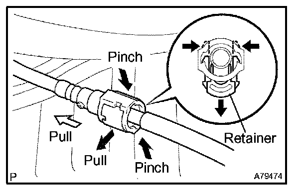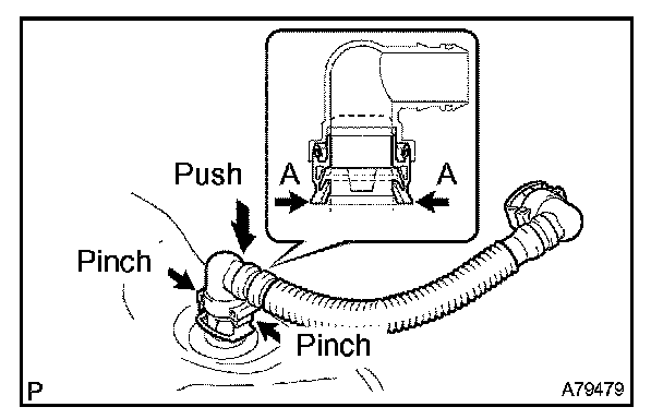 1. Pinch the tube connector and then pull out the fuel tube No. 1.