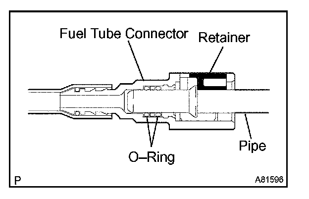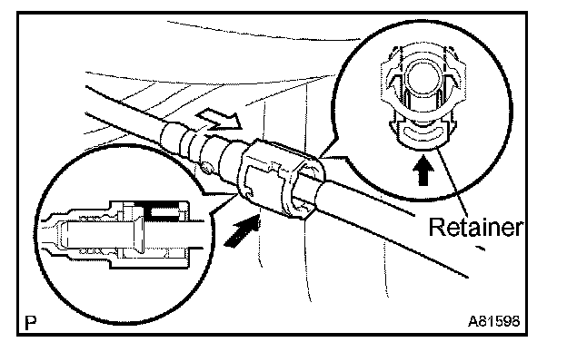 1. Push in the fuel tube connector to the pipe and push up the retainer so that the claws lock.
