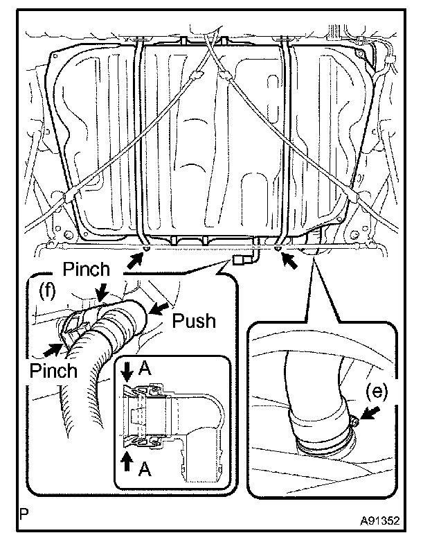 d. Connect the fuel tank inlet pipe with the fuel filler pipe clamp.