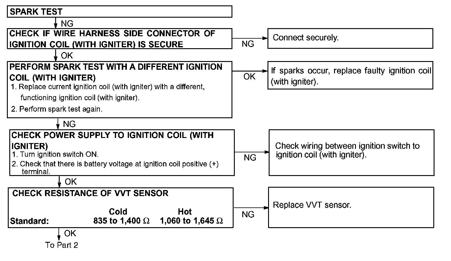 If sparks do not occur, do the test as shown.