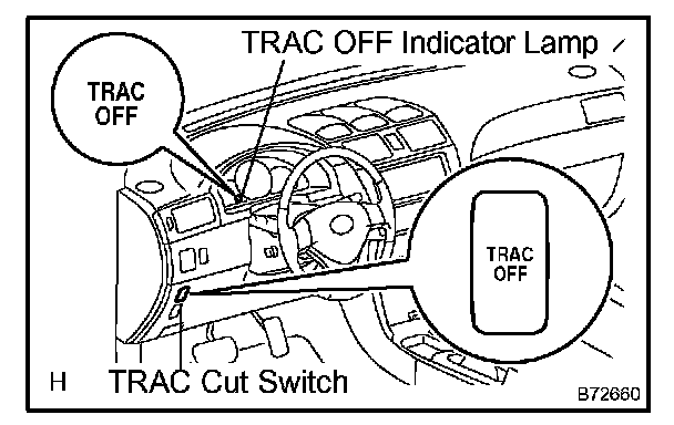 4. Press the TRAC cut switch to turn on the TRAC system and check that the TRAC OFF indicator lamp turns off.