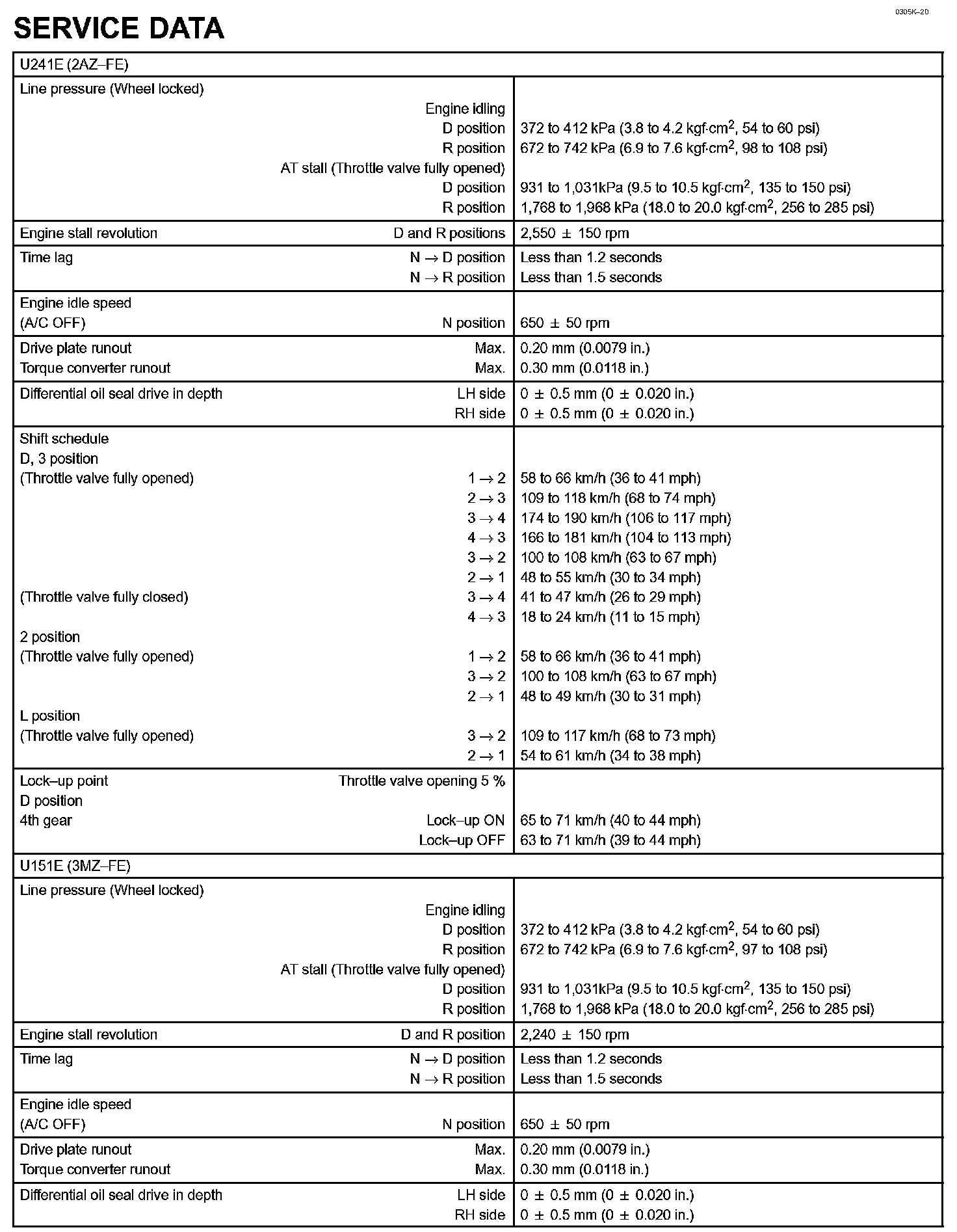 Automatic Transmission/Transaxle - Service Data Part 2: