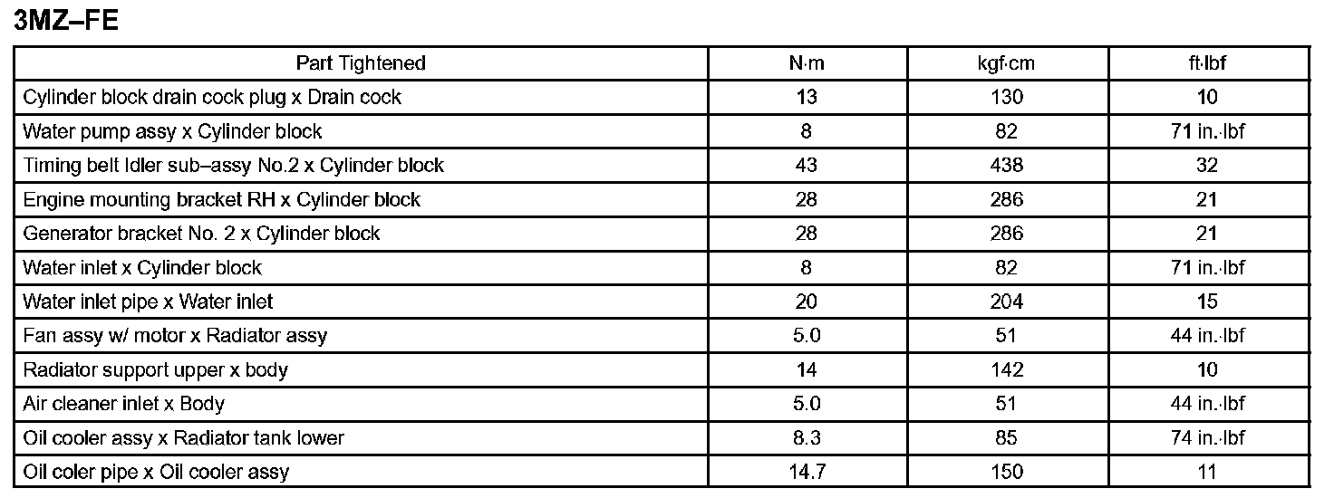 Cooling - Torque Specification:
