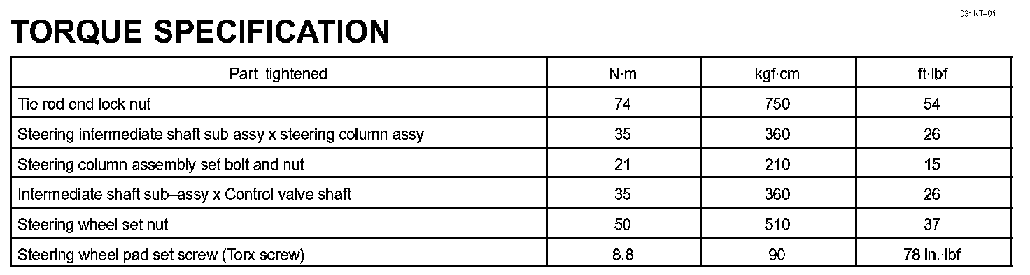 Steering Column - Torque Specification: