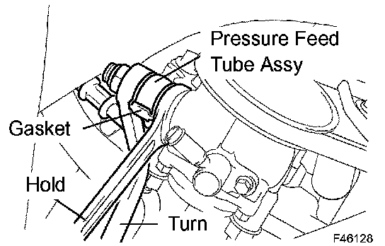 a. Using a wrench (24 mm) to keep the pressure port union, connect the pressure feed tube assy with the union bolt and a new gasket.