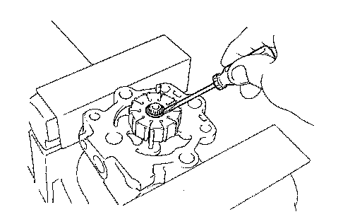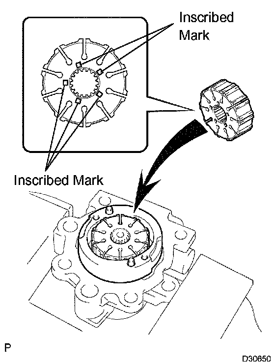 a. Install the vane pump rotor with the inscribed mark facing downward.