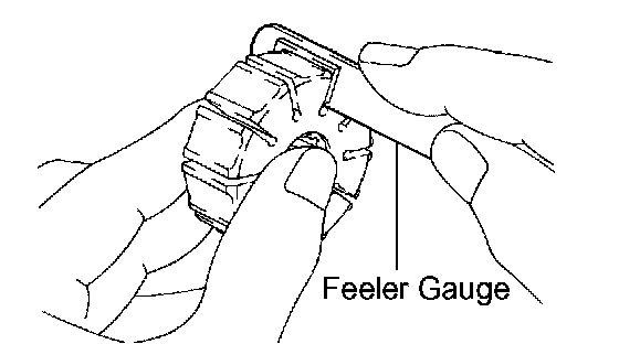b. Using a feeler gauge, measure the clearance between the vane pump rotor groove and the vane pump plate.