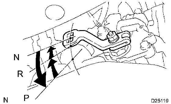 e) Start the engine and make sure that the vehicle moves forward when moving the lever from the N to D position and moves rearward when moving it to the R position.