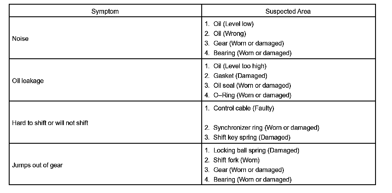 MANUAL TRANSAXLE SYSTEM (MTM)PROBLEM SYMPTOMS TABLE