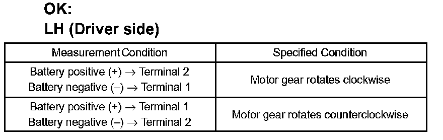 If the result is not as specified, replace the motor assembly.