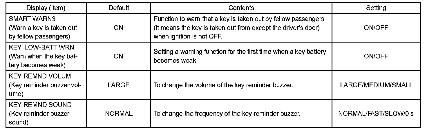 - A function that causes the vehicle to beep if keys are left inside the vehicle or luggage compartment and a door is closed.