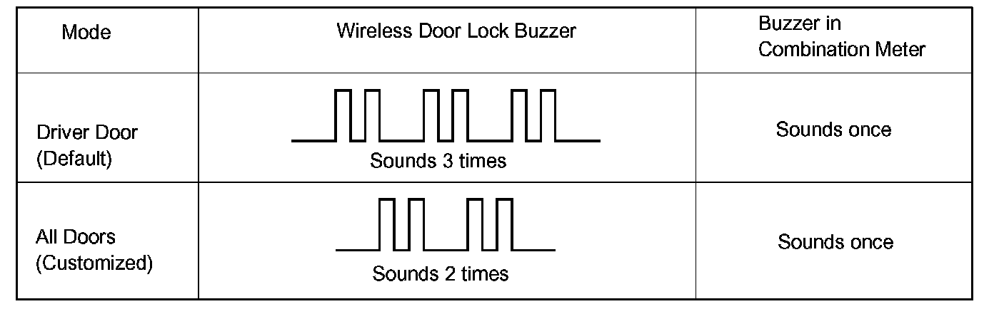 c. The certification ECU sounds the buzzer of the wireless door lock buzzer and combination meter to inform the user that the mode has been switched.