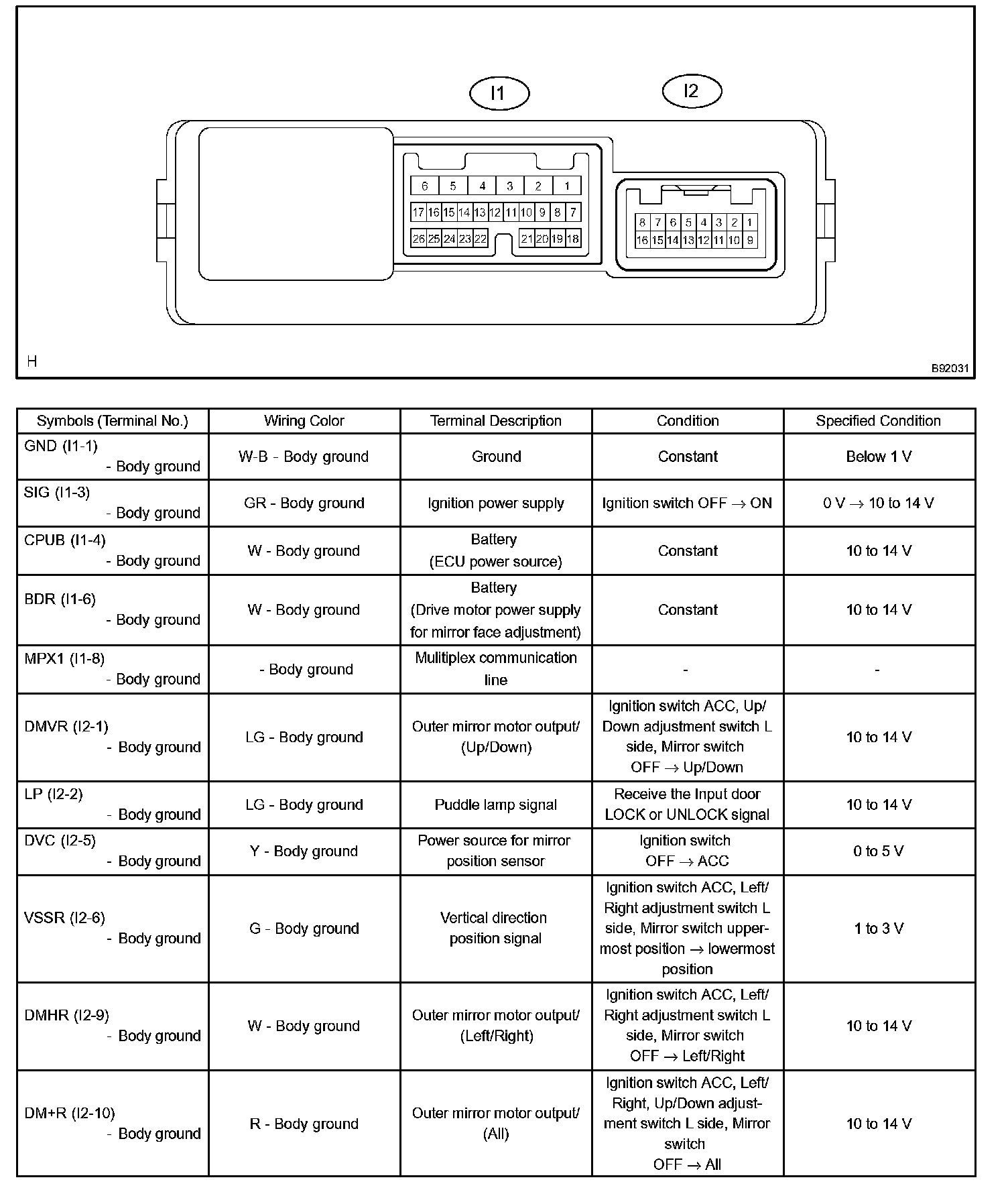 Terminals Of Control Module/Pinouts - Memory Mirror ECU (RH) Part 2: