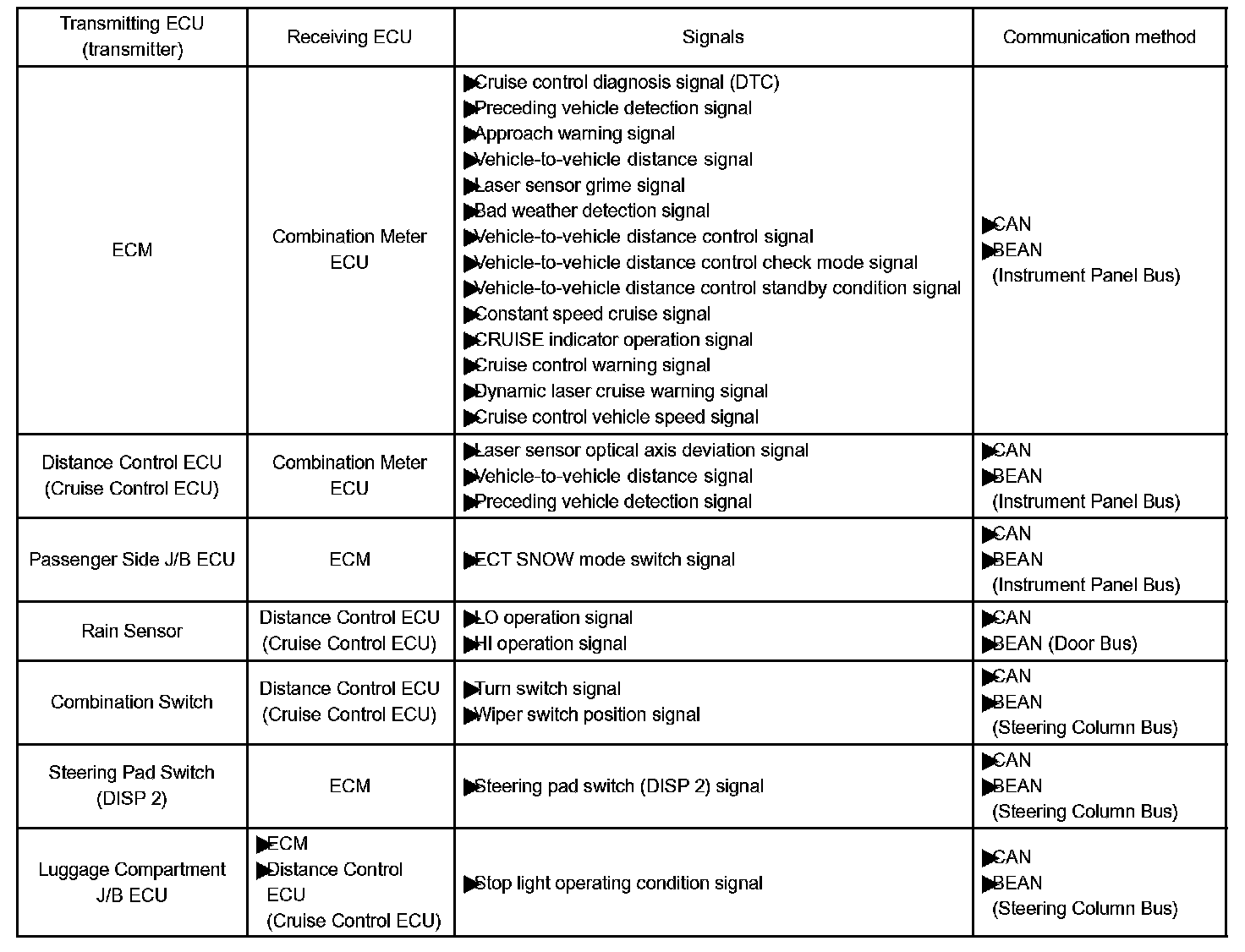 Input and output signals of each ECU.