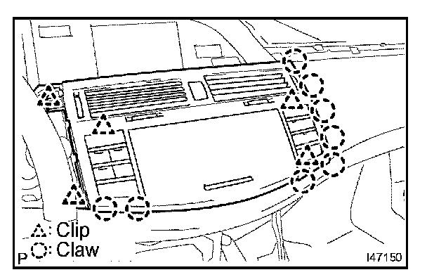 a. Release the 8 claws and 5 clips and instrument cluster finish panel sub-assembly center.
