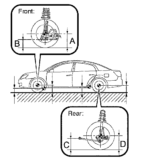 HINT: Bounce the vehicle at the corners up and down to stabilize the suspension and inspect the vehicle height.