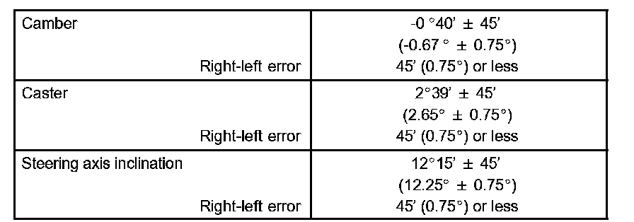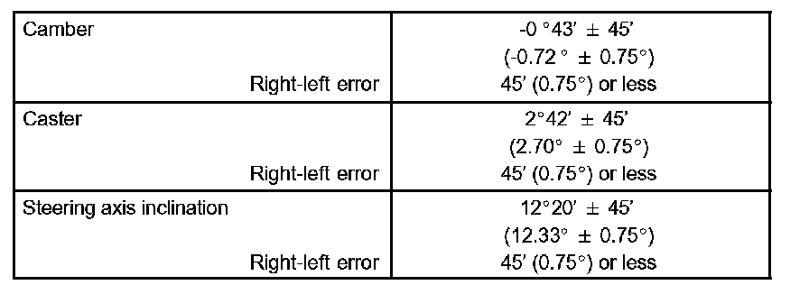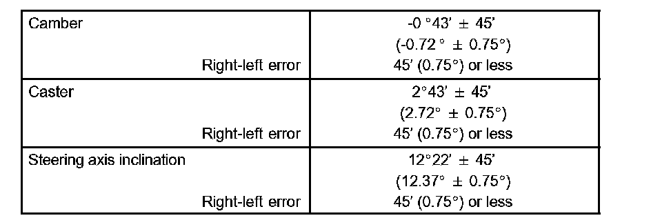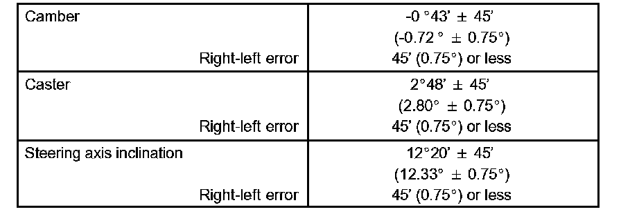 The body and suspension may be damaged if the camber is not correctly adjusted according to the above table.