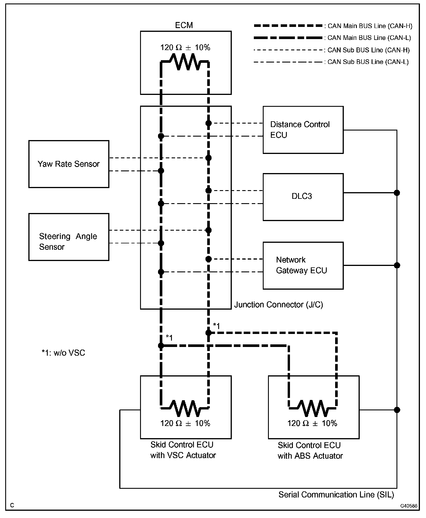 - The skid control ECU with actuator detects and stores steering sensor and yaw rate sensor DTCs and performs DTC communication by receiving information from the steering sensor and yaw rate sensor.