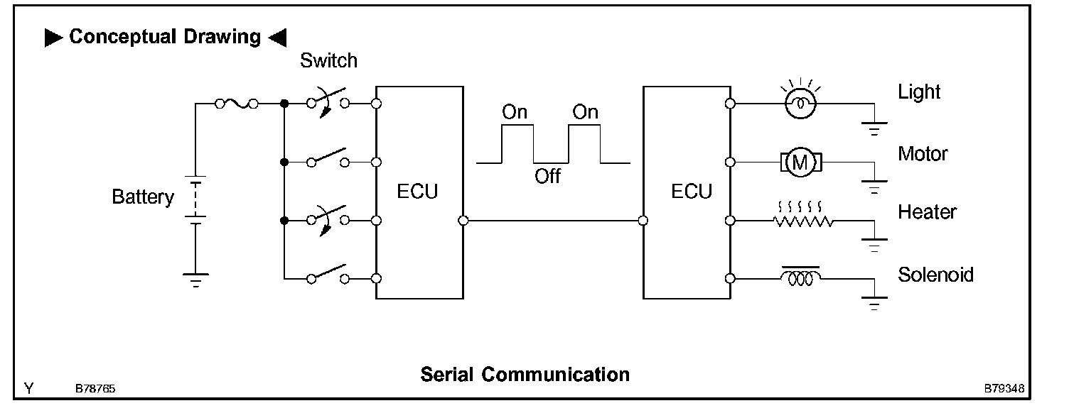 The AVALON multiplex communication uses serial communication, which converts multiple pieces of information into serial communication data. As a result, they can be transmitted through a single communication wire.