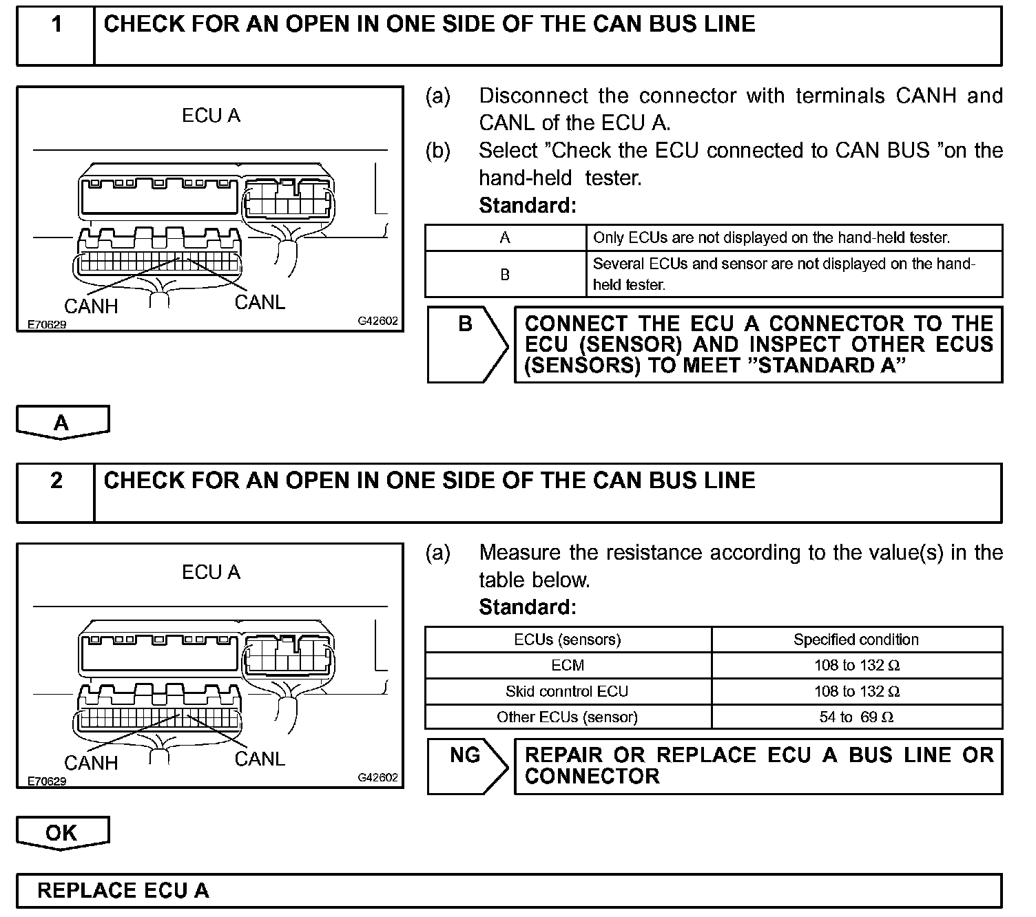 - The given is the troubleshooting procedure of an open in either CANH or CANL of the ECU A.