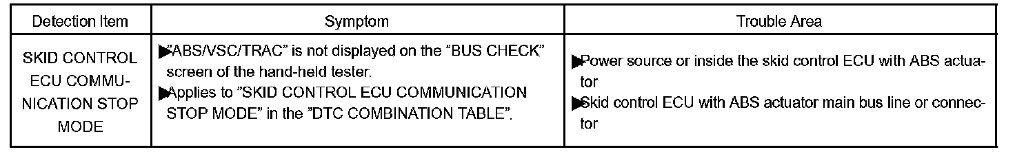 Skid Control ECU Communication Stop Mode - w/o VSC