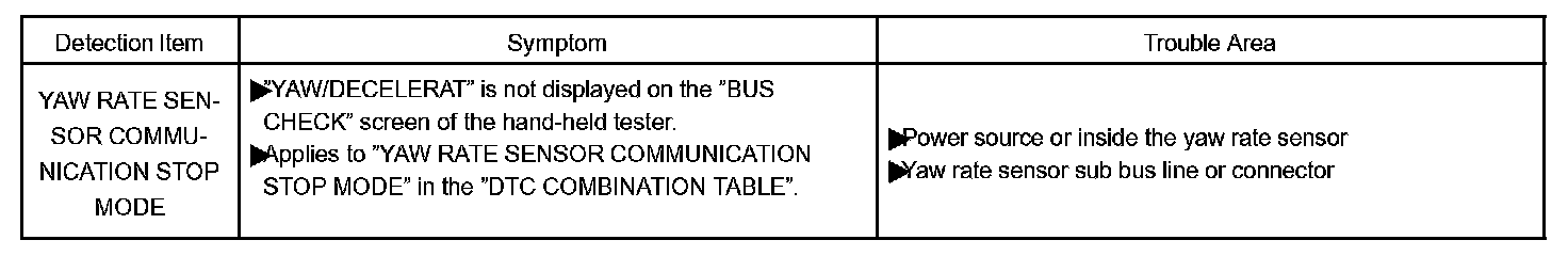 YAW RATE SENSOR COMMUNICATION STOP MODE